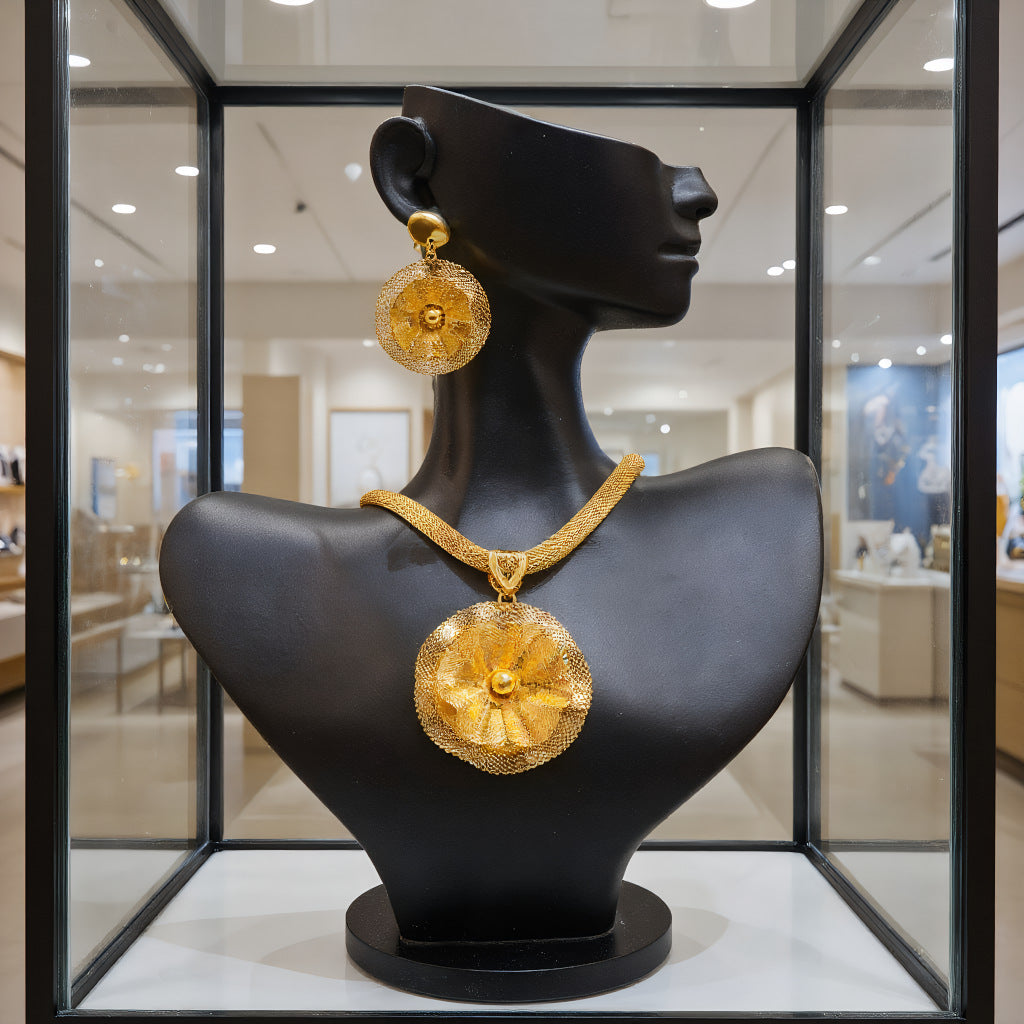 Gold Flower Necklace and Earrings Jewelry Set